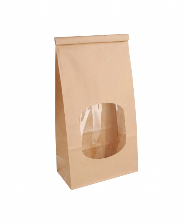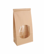 Disse brune poser med vindue har en blokbund. Dette gør det muligt at placere poserne korrekt og præsentere dine produkter effektivt. Forsiden har et krystalklart vindue og en lukning i toppen. Disse blikposer med bindebånd rulles op i toppen og lukkes med en klips. De bruges ofte til emballering af te, kaffe, nødder og andre lækkerier. Disse poser måler 7,5 cm x 4,5 cm x 24,5 cm.